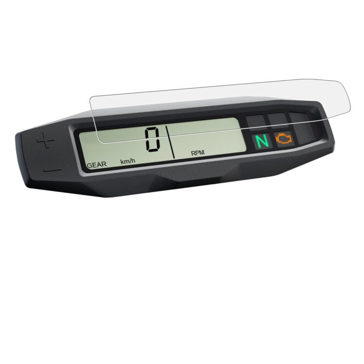 Nano Glass is made from plexiglass, compared to our standard screen protectors that are made completely from plastic. Nano Glass is thicker and has a higher scratch resistance compare to our ‘standard’ screen protectors. There are less fitting options available in Nano Glass because the material does not have the same flexibility as plastic so there are certain bikes that are not compatible with the material.
